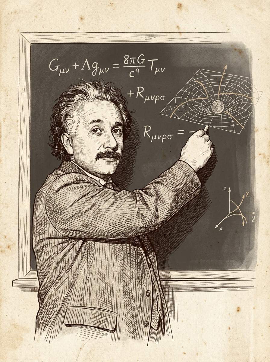 After ten years of relentless intellectual struggle — years Einstein later described as the hardest of his life — he stood before the Prussian Academy of Sciences in November 1915 and presented his completed field equations. The room fell quiet. He had rewritten gravity itself as the curvature of four-dimensional spacetime.